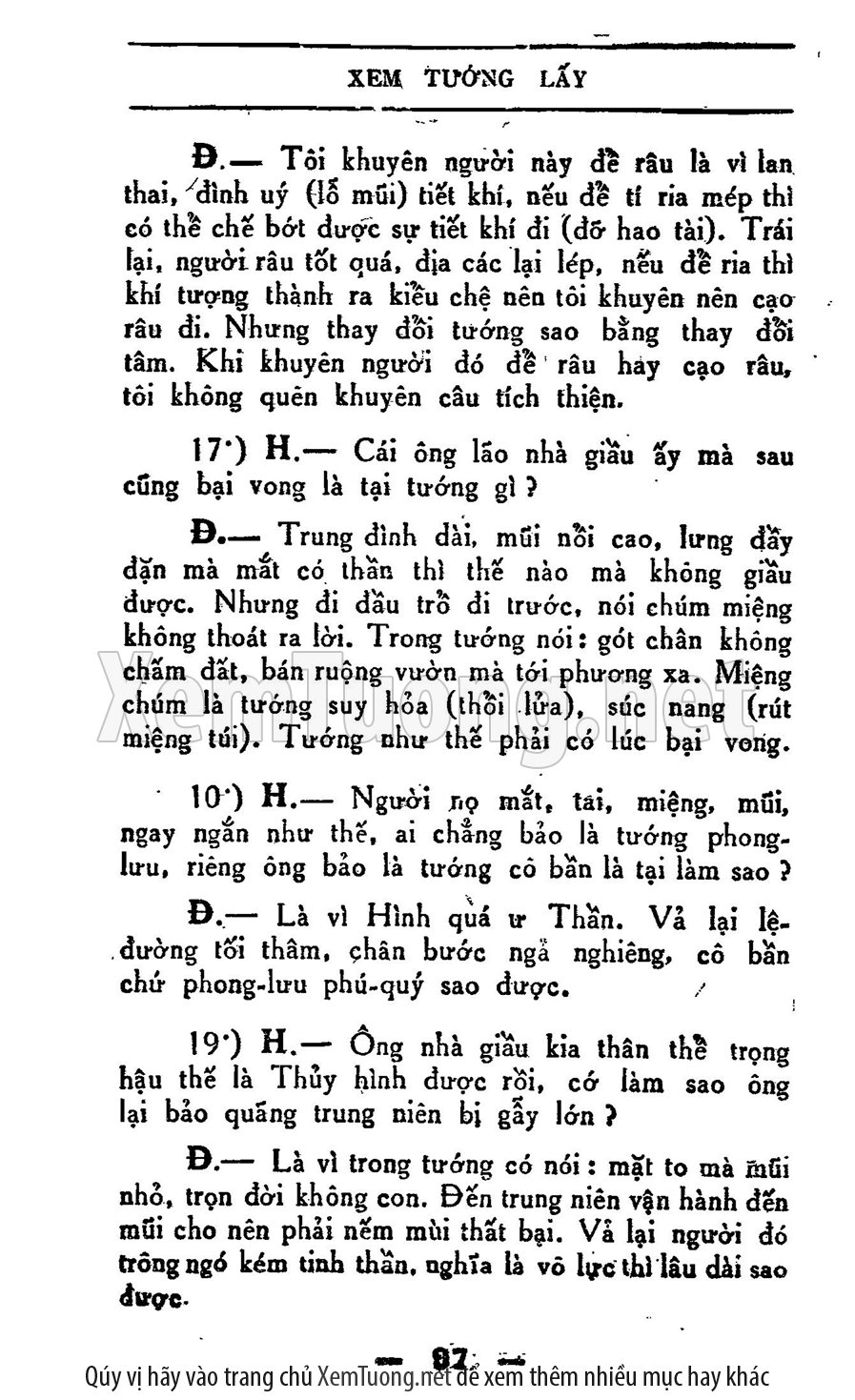 Sách "Xem Tướng Lấy Theo Lối Tàu" của tác giả Tú Can sẽ giúp chúng ta trả lời các câu hỏi: Ta lấy người đó có nên không, người đó có phúc tướng không? Thọ hay yểu, có trở nên giàu có, có phú quý được không?có nên đi xa chuyển này hay không? Việc dự định làm thành hay bại, lợi ít hay lợi nhiều? Sinh con trai hay sinh con gái?..., chính vì vậy, sau nhiều năm nghiên cứu về khoa xem tướng của Tàu, tác giả đã viết nên cuốn sách này nhằm giúp bạn đọc phần nào hiểu được mình, được người, vựng lòng tin tưởng ở tương lai.