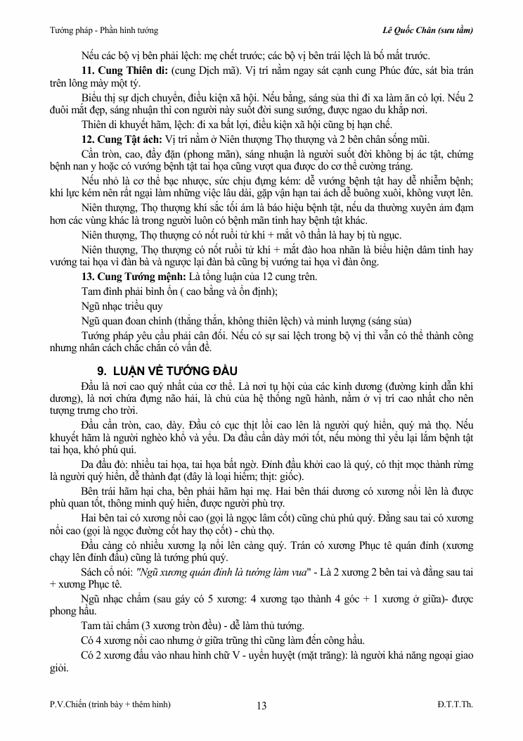 13 Bộ vị quang trọng