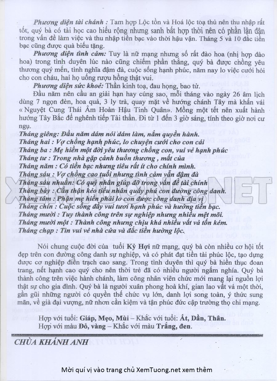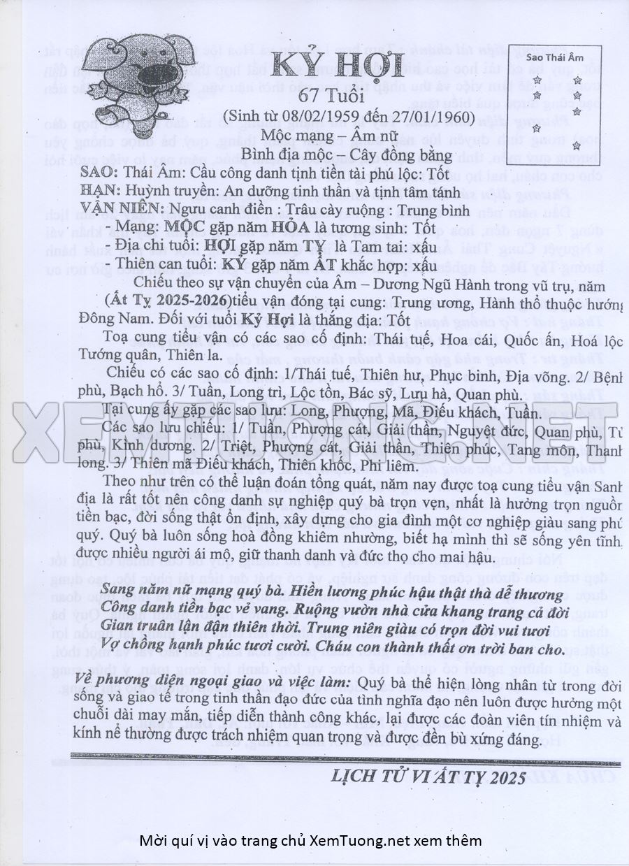 Tử Vi Năm Ất Tỵ 2025 mạng nữ KỶ HỢI