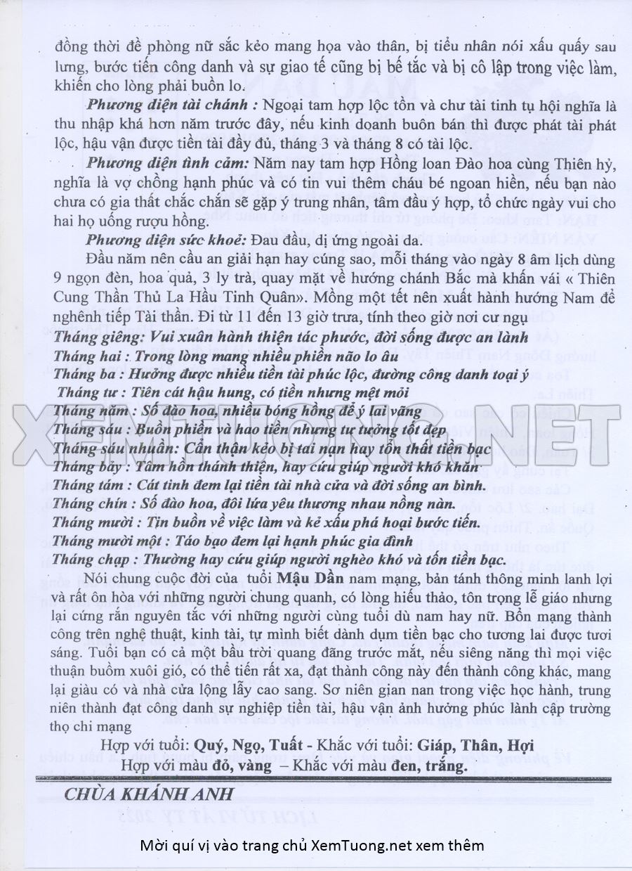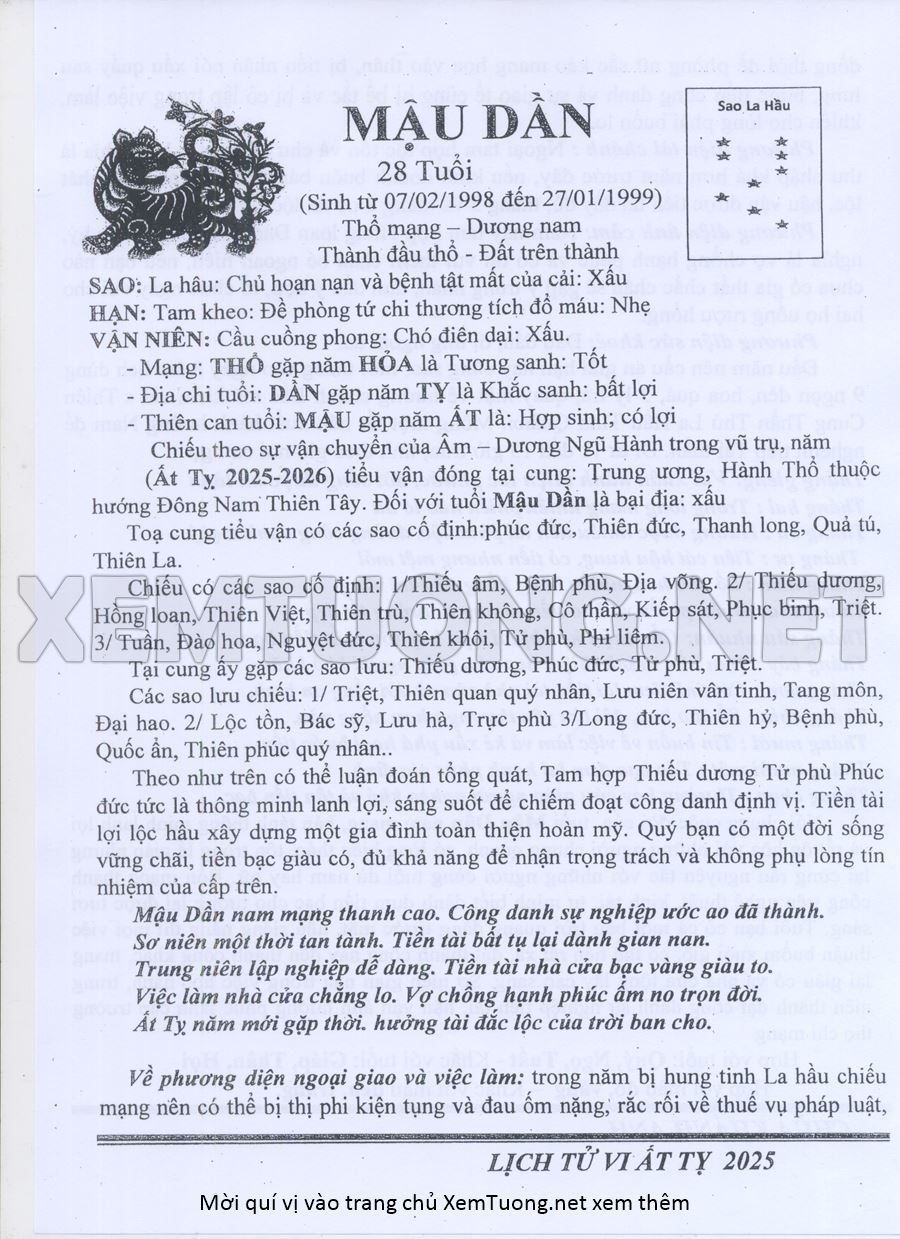 Tử Vi Năm Ất Tỵ 2025 mạng nam MẬU DẦN