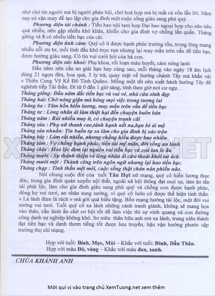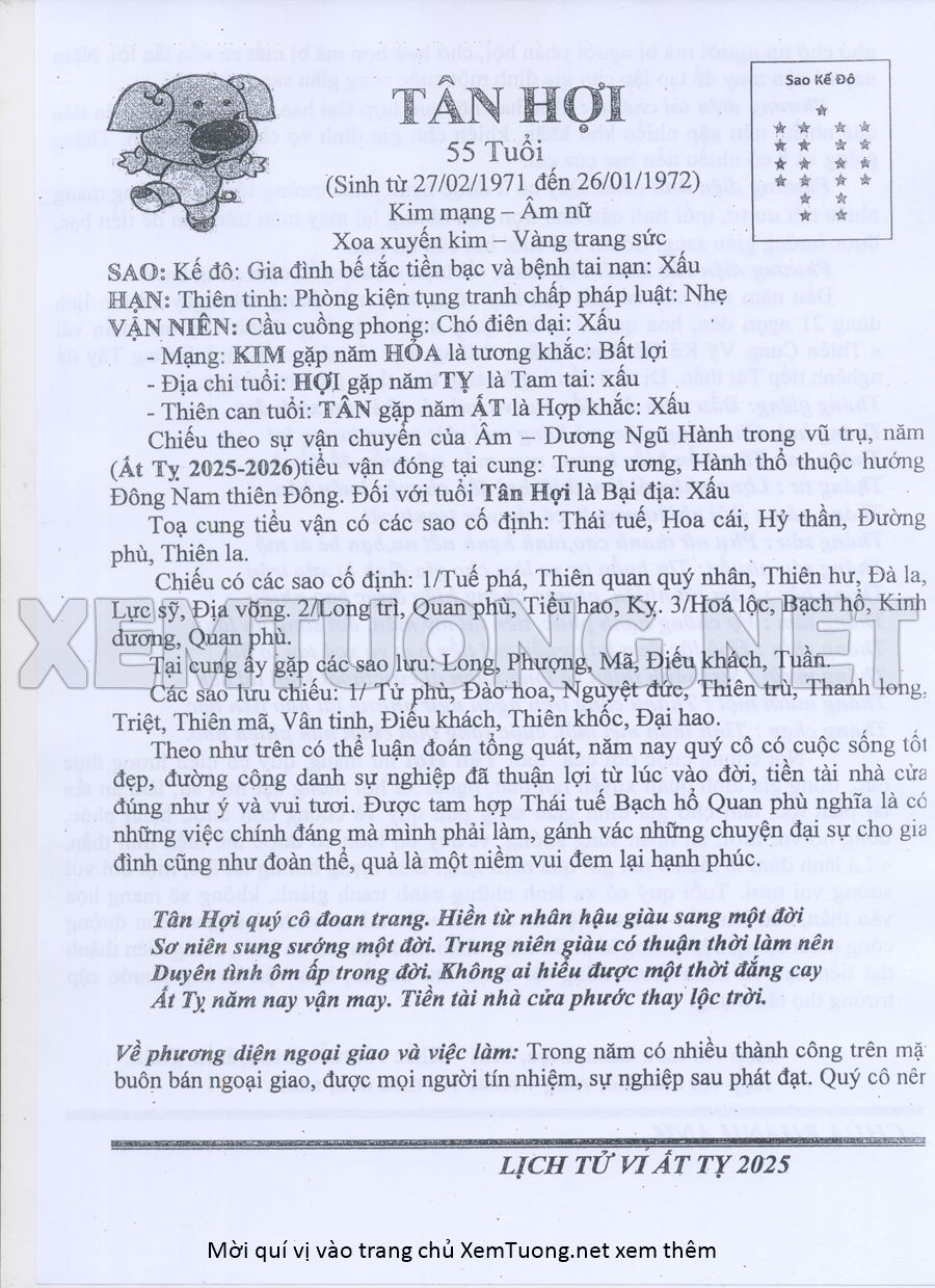 Tử Vi Năm Ất Tỵ 2025 mạng nữ TÂN HỢI