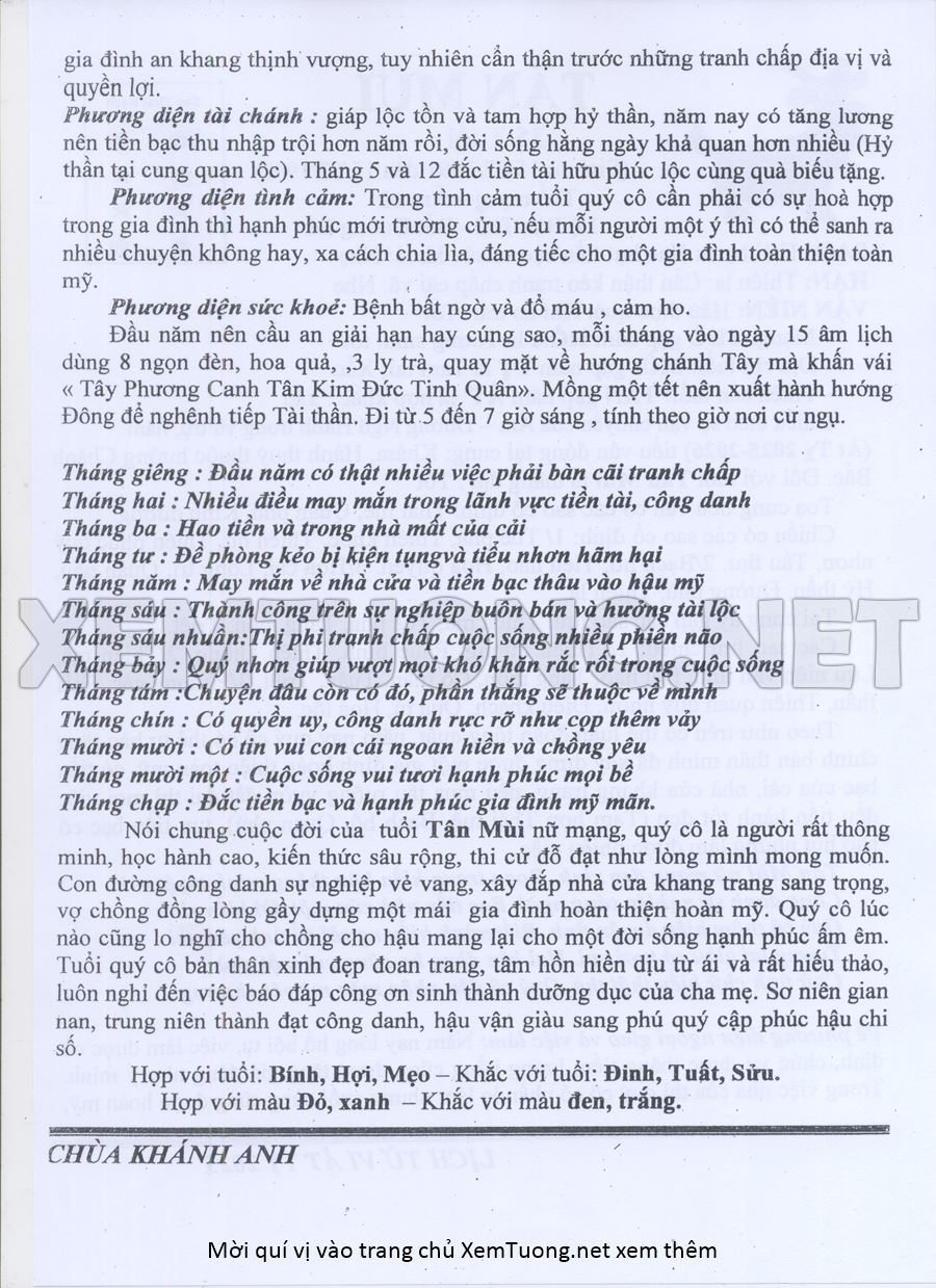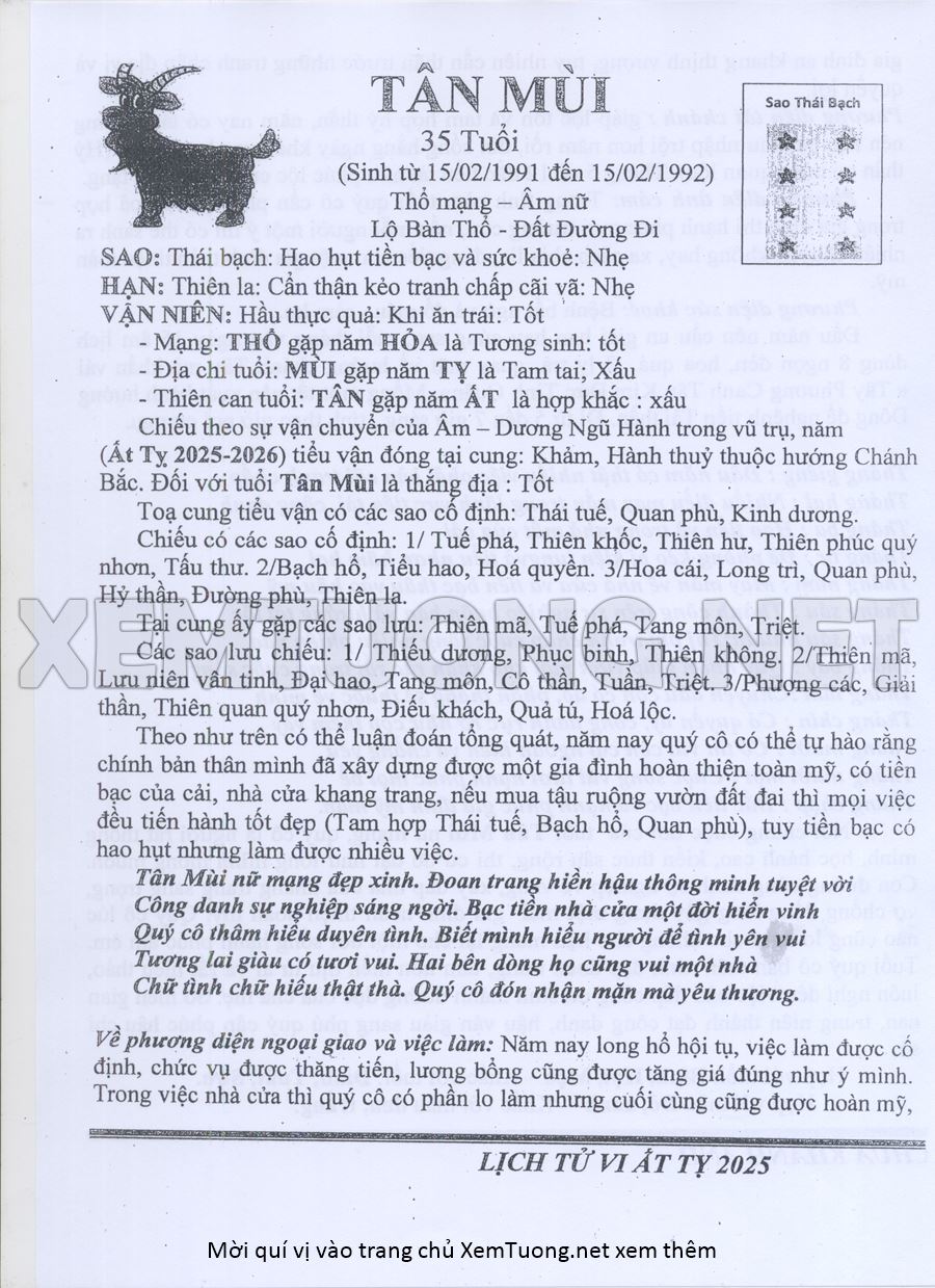 Tử Vi Năm Ất Tỵ 2025 mạng nữ TÂN MÙI