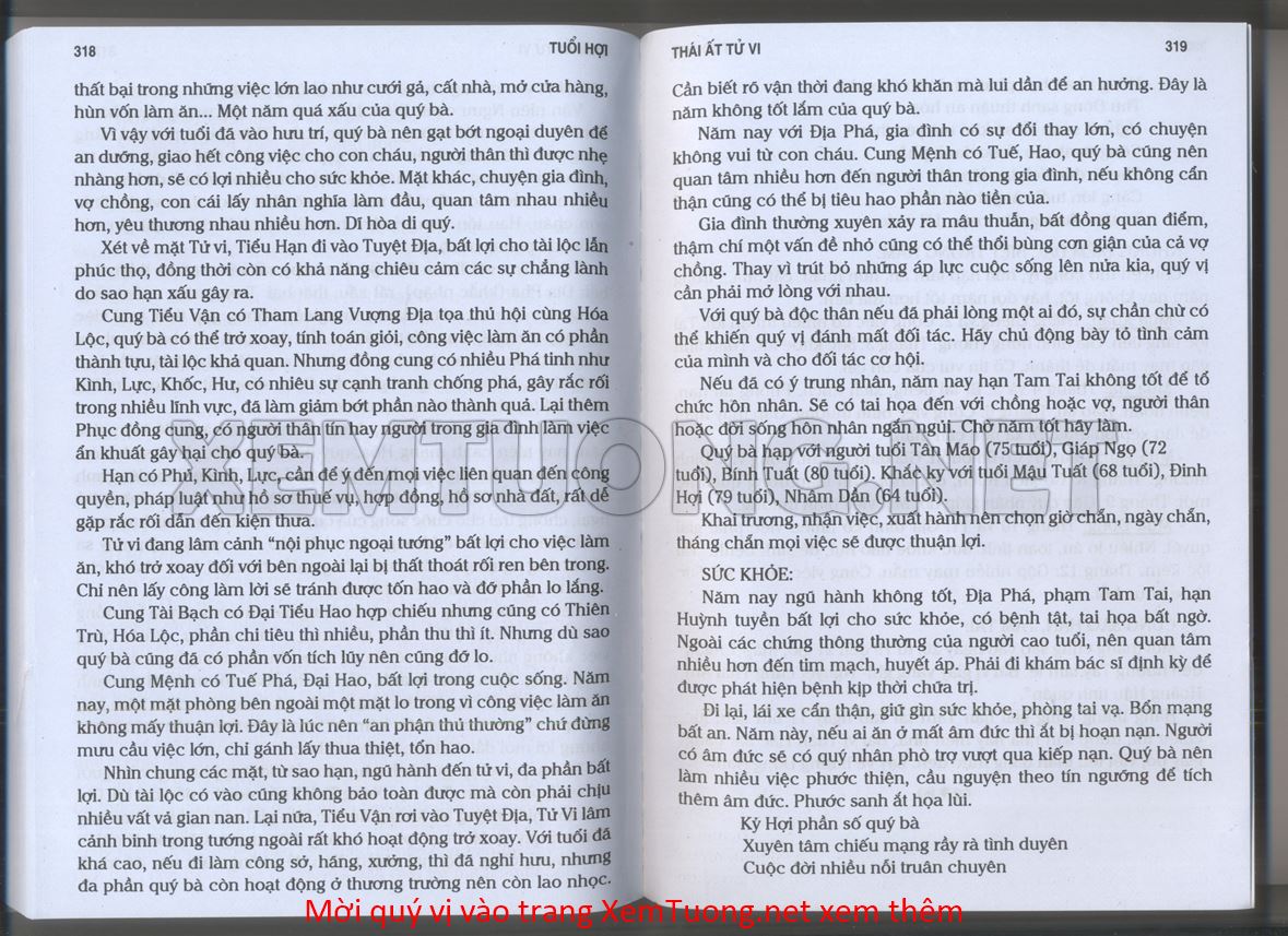 (Lưu ý: Thái Ất Tử Vi được chúng tôi scan từ sách, do đó mỗi tuổi sẽ có nhiều trang, quý vị xem xong hãy nhấn vào trang tiếp theo để xem hết phần tuổi muốn xem. Nếu quý vị xem bằng điện thoại thì hãy kéo qua lại để xem phần bị khuất.)