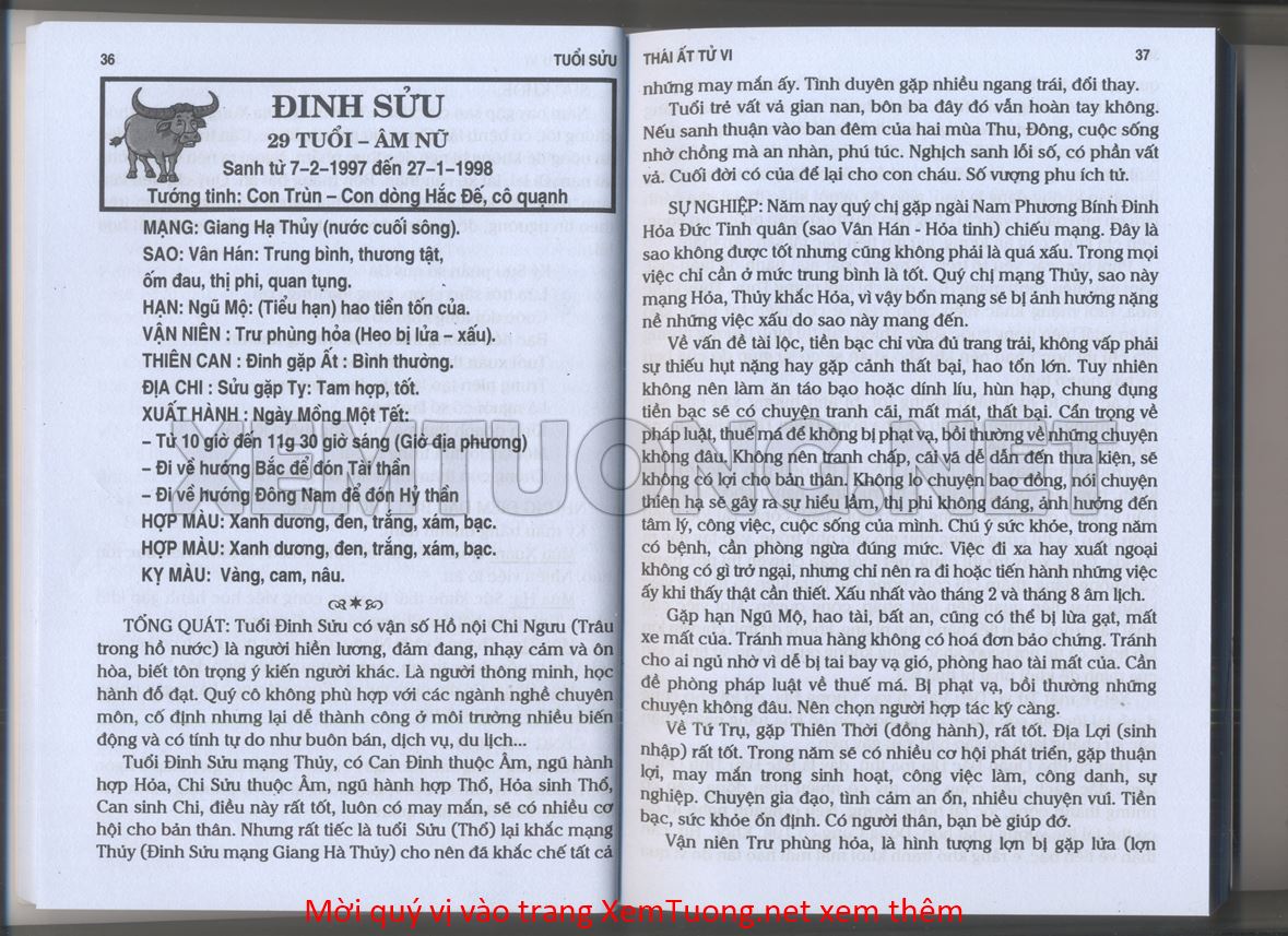 (Lưu ý: Thái Ất Tử Vi được chúng tôi scan từ sách, do đó mỗi tuổi sẽ có nhiều trang, quý vị xem xong hãy nhấn vào trang tiếp theo để xem hết phần tuổi muốn xem. Nếu quý vị xem bằng điện thoại thì hãy kéo qua lại để xem phần bị khuất.)