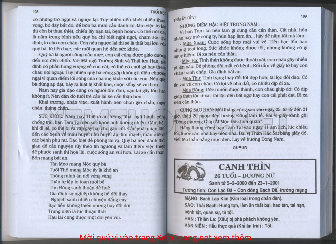 (Lưu ý: Thái Ất Tử Vi được chúng tôi scan từ sách, do đó mỗi tuổi sẽ có nhiều trang, quý vị xem xong hãy nhấn vào trang tiếp theo để xem hết phần tuổi muốn xem. Nếu quý vị xem bằng điện thoại thì hãy kéo qua lại để xem phần bị khuất.)
