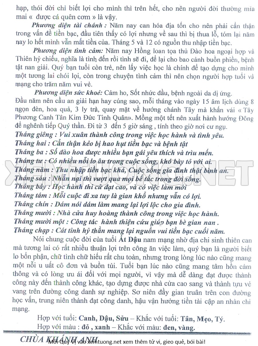 Tử Vi Năm Bính Ngọ 2026 mạng nam ẤT DẬU
