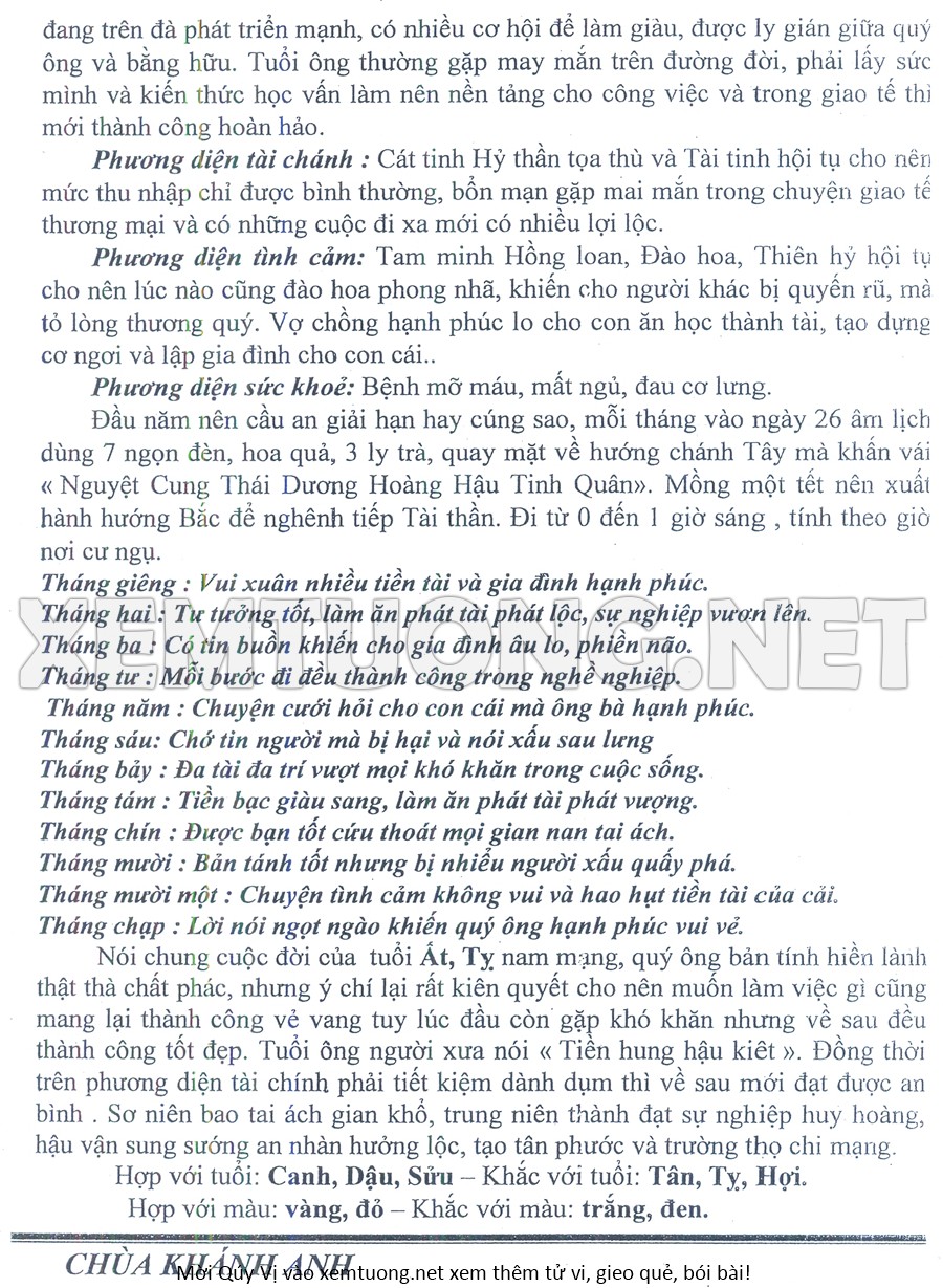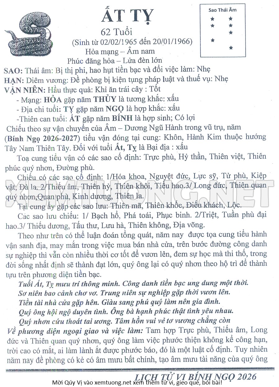 Tử Vi Năm Bính Ngọ 2026 mạng nam ẤT TỴ