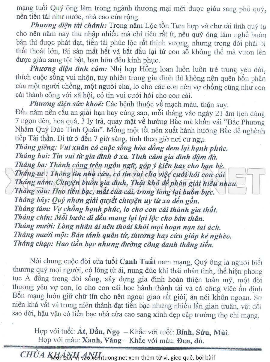 Tử Vi Năm Bính Ngọ 2026 mạng nam CANH TUẤT