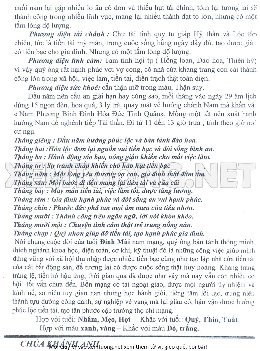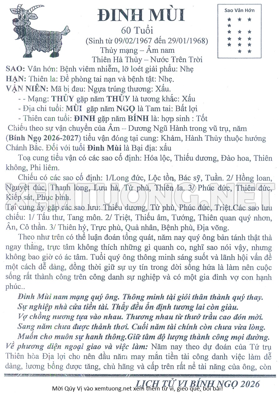 Tử Vi Năm Bính Ngọ 2026 mạng nam ĐINH MÙI