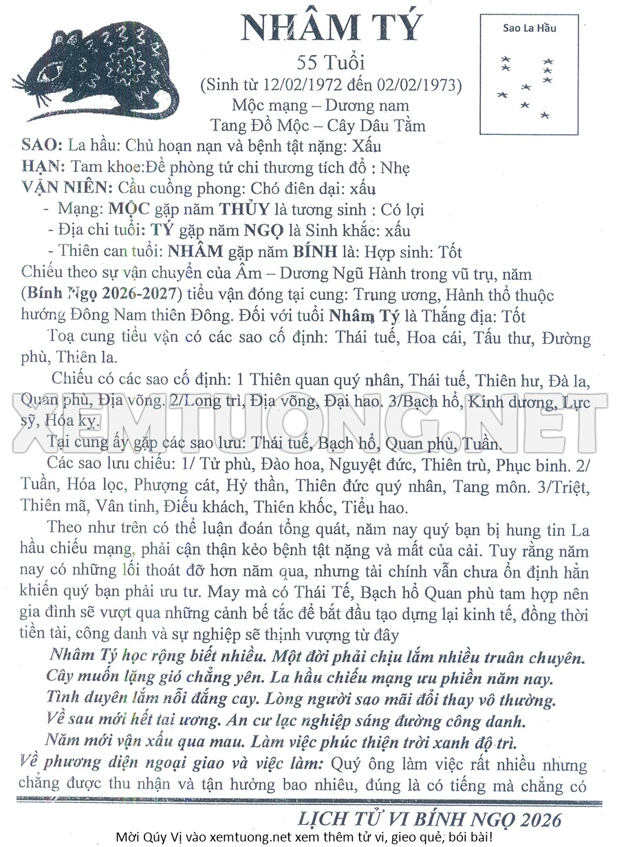 Tử Vi Năm Bính Ngọ 2026 mạng nam NHÂM TÝ