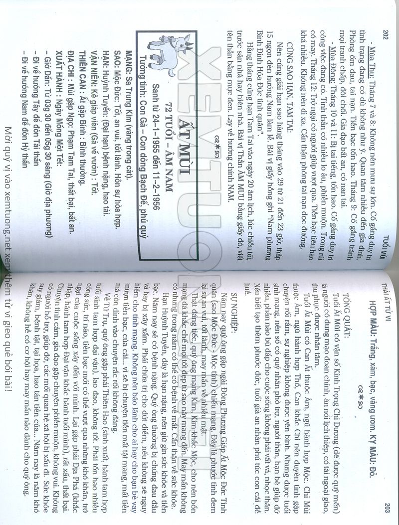 (Lưu ý: Thái Ất Tử Vi được chúng tôi scan từ sách, do đó mỗi tuổi sẽ có nhiều trang, quý vị xem xong hãy nhấn vào trang tiếp theo để xem hết phần tuổi muốn xem. Nếu quý vị xem bằng điện thoại thì hãy kéo qua lại để xem phần bị khuất.)